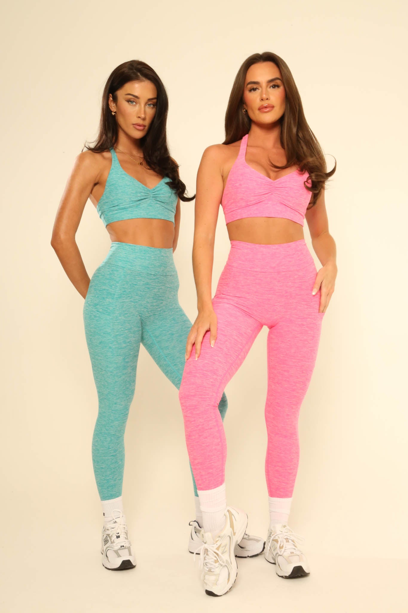 High-Waist Sculpting Leggings & Alterneck Sports Bra Set - PINK