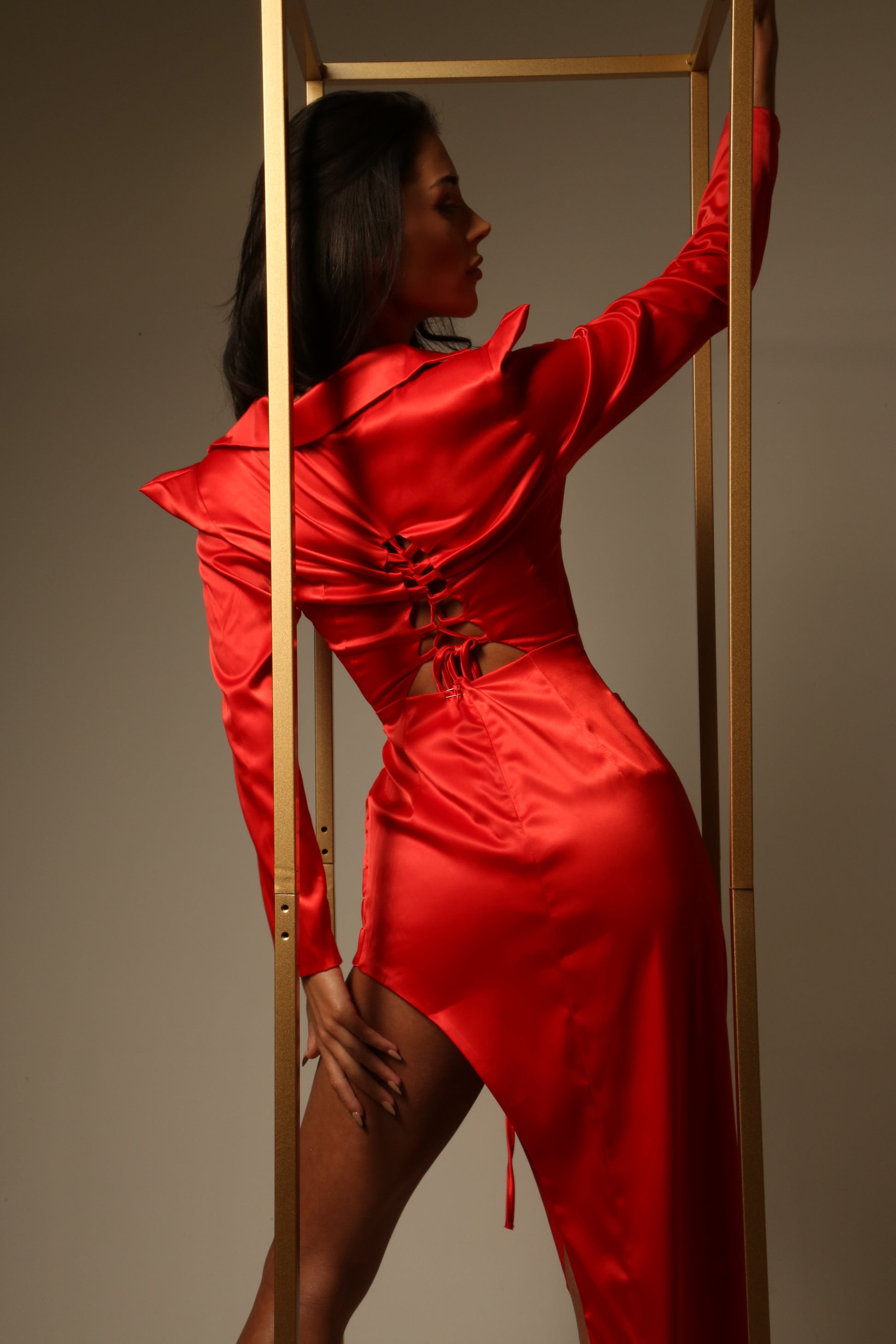 Long Sleeve Red - High Split Leg Dress